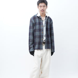 BLUE BROWN CHEQUERED WOOL JACKET