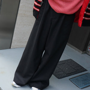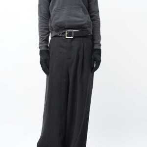 -WASHED WOOL 1TUCK WIDE TROUSERS-